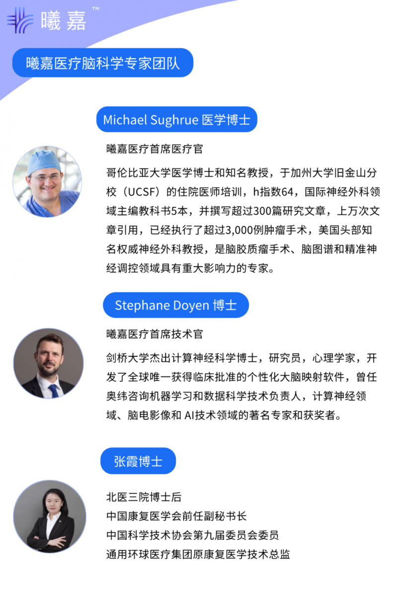 曦嘉为医疗系统提供实用且简易的软件解决方案,通过针对性大脑疾病分析,将神经外科,神经内科和神经科学领域的前沿先锋联合起来,为每一位用户提供科学、安全、有效的服务。