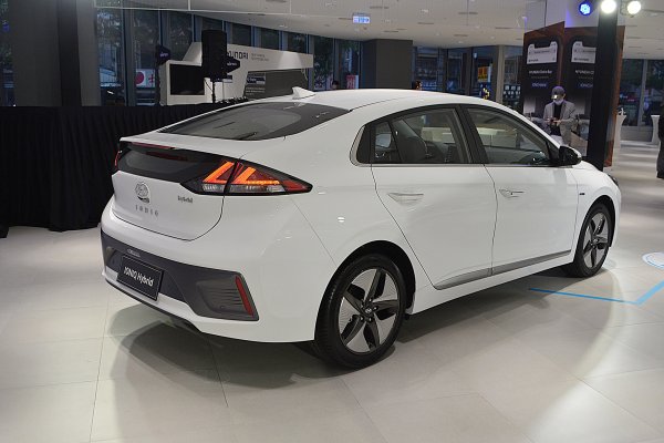 中期改款Ioniq Hybrid仍维持原来类似轿跑车的Fastback斜背式造型,拥有相同的Cd值0.24低风阻,在造型上,主要变动在于车头换上全新的复眼式LED车灯组,结合双刀式LED日行灯,水箱护罩水箱护罩也采用现代最新的六角型水箱护罩,水箱护罩还拥有自动启闭的功能,另有全新的菱格纹造型气坝,而车侧升级风阻更低的17吋扇形铝圈,车尾则是更全新设计的箭矢型LED尾灯,提升辨识度。