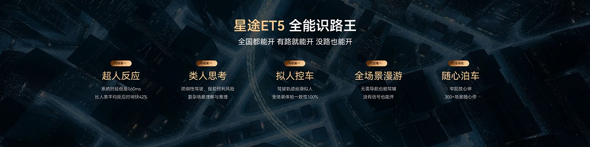 星途ET5以无与伦比的超智慧,打破了传统豪华的边界。它搭载猎鹰700辅助驾驶,全球首发地平线HSD及征程®6P芯片,以远超同级的560TOPS算力,构建起强大的数字底座,实现国内首个真正一段式端到端架构。星途ET5拥有了“超人反应”“类人思考”“拟人控车”“全景漫游”“随心泊车”五大核心优势,无论是在拥堵的城市高峰,未知的无图路段,星途ET5都能回馈毫秒级响应,优于行业40%;同级领先27颗传感器,3个足球场无死角覆盖,赋予驾驶者绝对的掌控感与安全感。星途始终坚持“能用是底线、敢用是标准、爱用才是享受”!