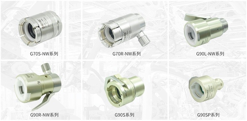 采用侧面流体接口并集成安全锁结构,增强操作安全性,适合侧面连接不受限的场合。标准型号不多,以定制为主。