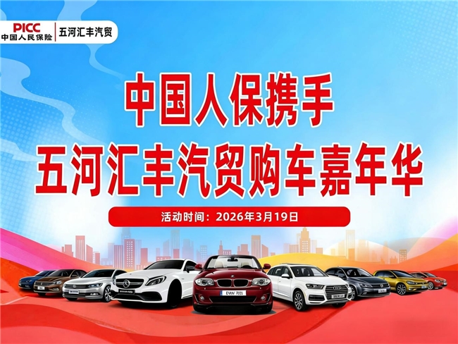 如果你正有购车计划,或是想深入了解当下热门车型,不妨把握这次难得的机会,在2026年03月19日,前往五河县汇丰汽贸,参与中国人保与五河汇丰汽贸共同打造的购车嘉年华活动。相信在这里,你不仅能挑选到满意的座驾,还能享受到专属的购车优惠与福利,让购车之旅既省心又划算,开启全新的出行生活!